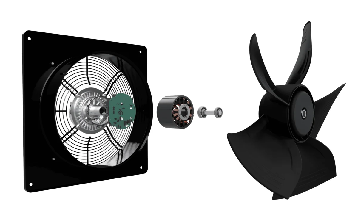 Zusätzlich verfügen EC-Motoren über eine integrierte, präzise Steuerelektronik. Sie sind bürstenlos, was die Lebensdauer erhöht. Geregelt werden sie typischerweise über einen Drehzahlregler im Bereich 0–100 %.